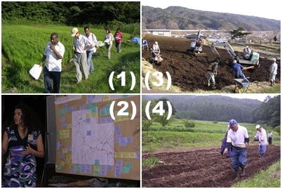 JICA海外研修生を受け入れ、環境点検から将来ビジョンを策定する実習を行い、地域の課題を明らかにし、さらにその解決に向けて、農林水産省「田舎で働き隊!」事業の研修生が耕作放棄地を開墾し、区民農園として復活させ、家庭菜園を希望する区民に貸し出しました。また、定年退職者が中心となり、耕作放棄地を開墾してダイズやソバを植え、棚田でのコメづくりを継承し、長野県の「地域発元気づくり支援金」で桑の苗を植え、ヤギも飼い始めました。子供だったころの農業のすがたと農村のくらしを思い出しながら、三沢区自前の「農政」を模索しながら進めています。